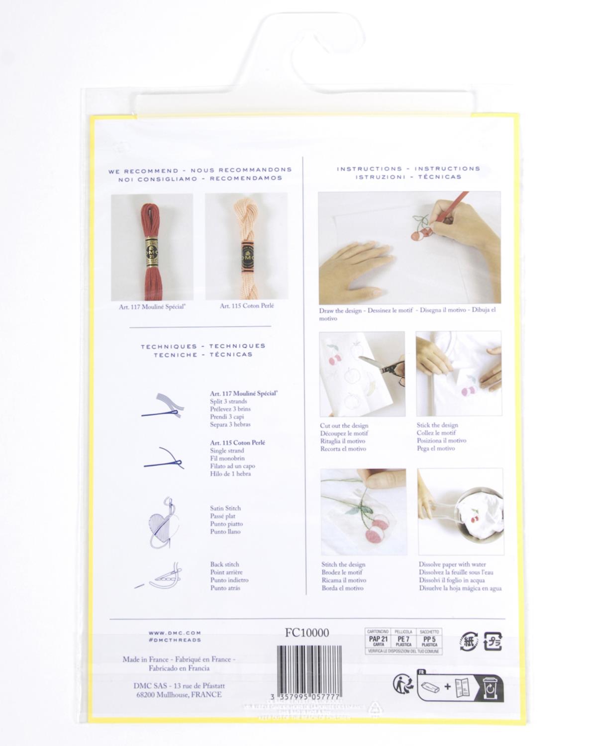 Tegn på mønsteret, fest arket til stoffet og brodér. Deretter skyller du med vann - og papiret løser seg opp.