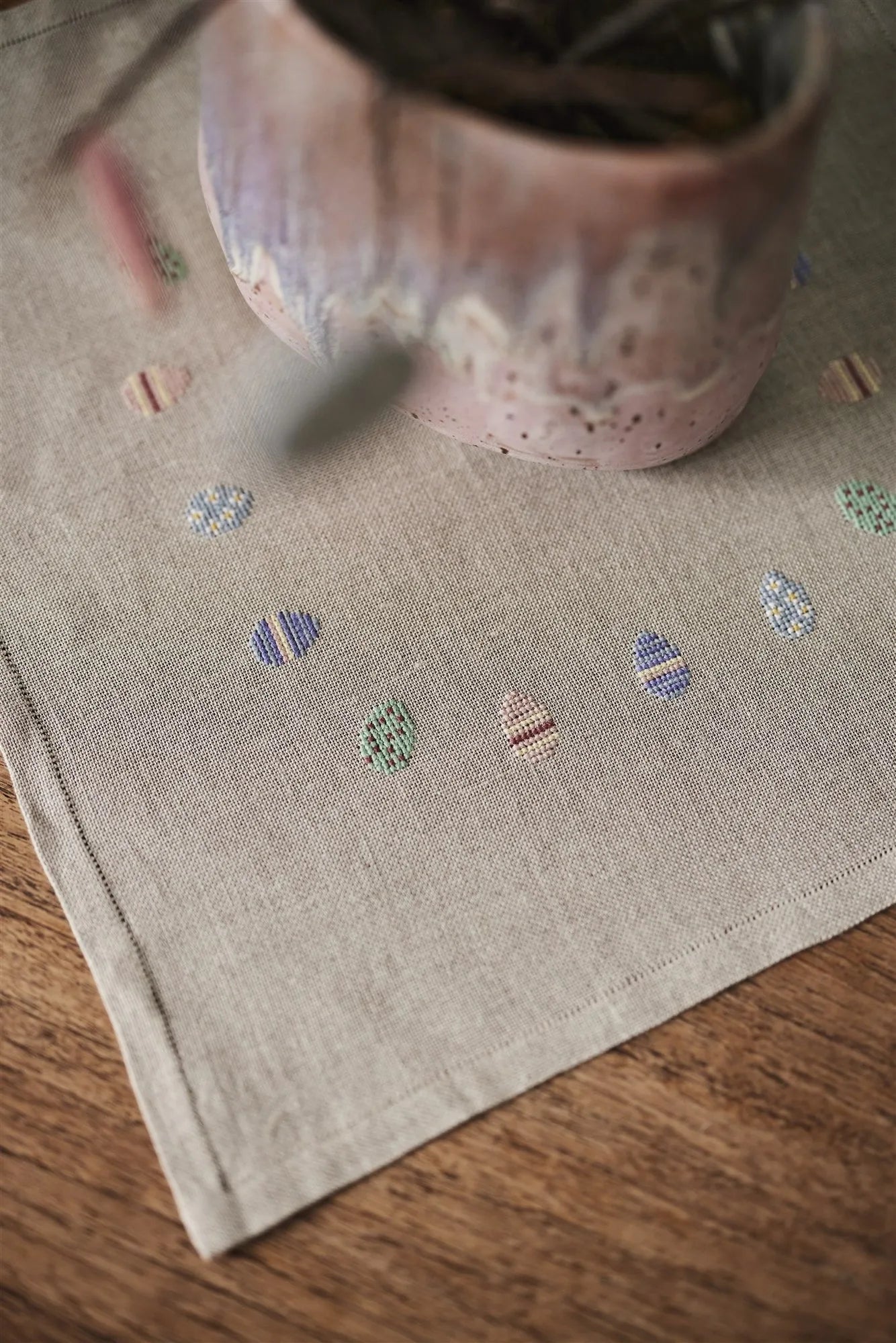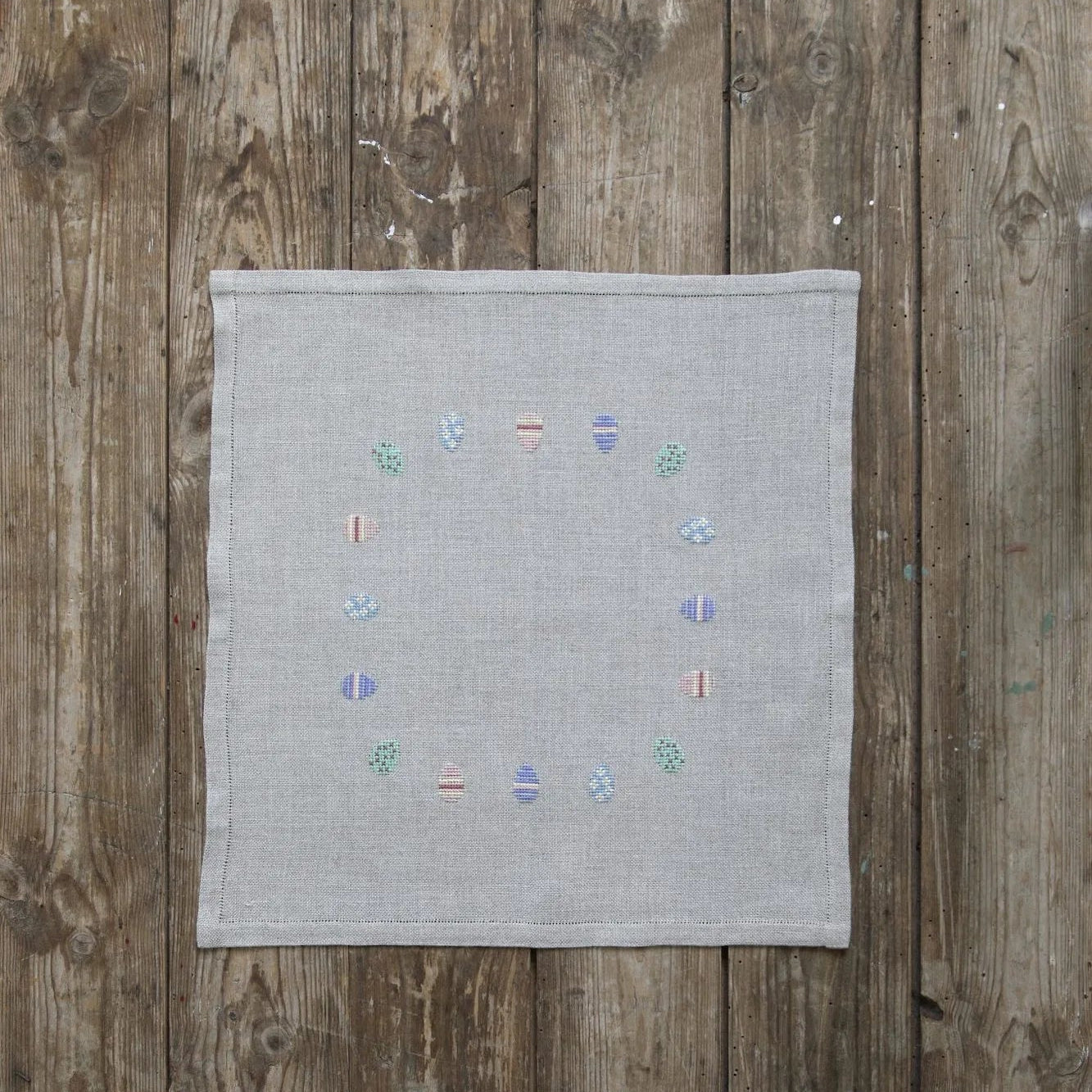 Broder din egen påskeserviett. Passer perfekt oppi brødkurv eller som en flott brikke på påskebordet. Eggene sys med korssting.